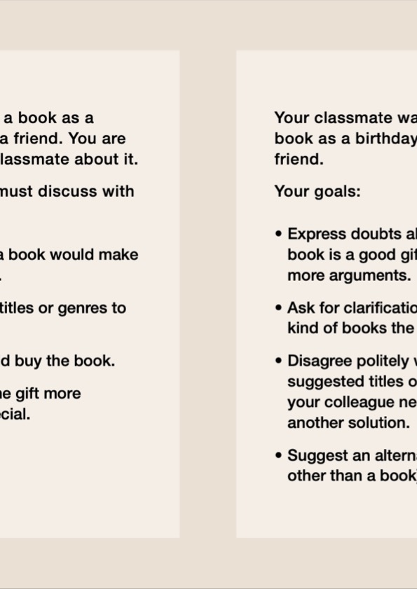 • 2 ćwiczenia typu role-play (zadanie 1)