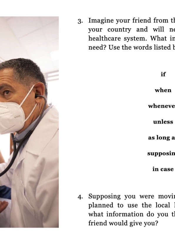 That’s Conversation! Healthcare is a thought-provoking ten-page MiniEbook designed for engaging discussions in your upper-intermediate and advanced adult ESL classes (B2+/C1). This MiniEbook explores the world of healthcare systems, medical practices, and ethical dilemmas, encouraging students to reflect on global healthcare standards and personal experiences with illness and treatment. It also provides targeted grammar practice with Conditionals (Type 1, 2, and 3) in meaningful contexts.